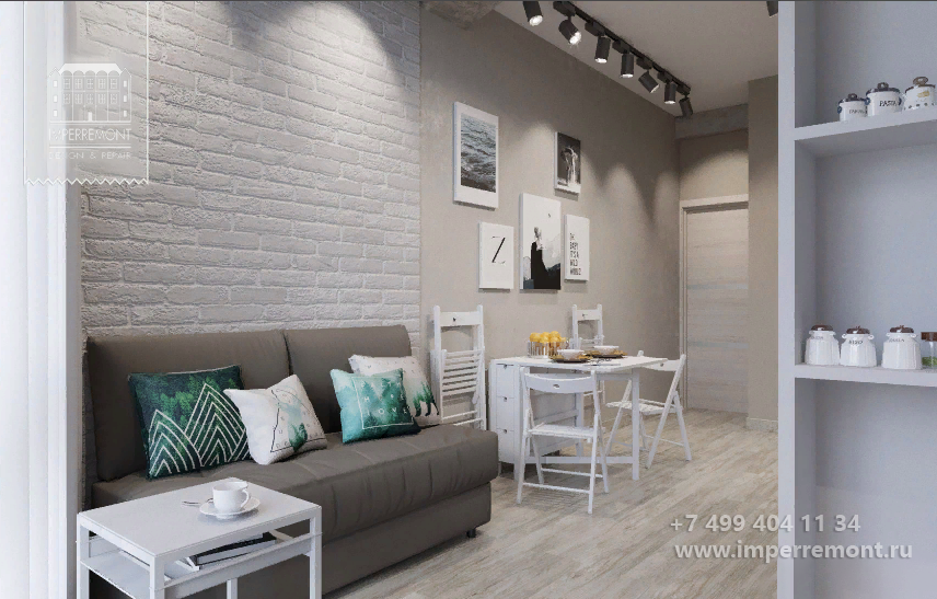 Описание: молодая пара заказала свежий ремонт для небольшой квартиры в современном стиле, они любят путешествовать, поэтому попросили добавить тропические узоры, принты в свой интерьер, упоминание о путешествиях мы реализовали картинами об окружающем мире. Интерьер получился свежим, светлым и гостеприимным.