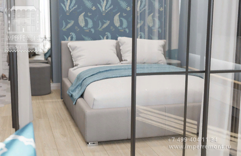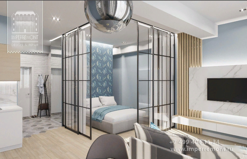 Студия со спальней за стеклянной перегородкой