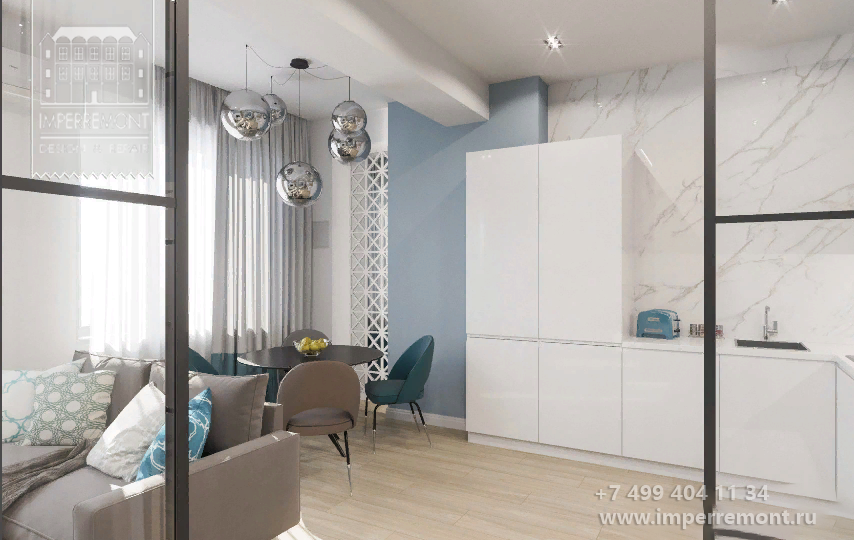 Даже находясь в другом городе или в разъездах, вы можете получить интерьер с фирменным качеством Компании ИМПЕРИЯ РЕМОНТА. У нас отлажена технология «бесконтактного» дизайна и контроля работы прорабов и бригад!